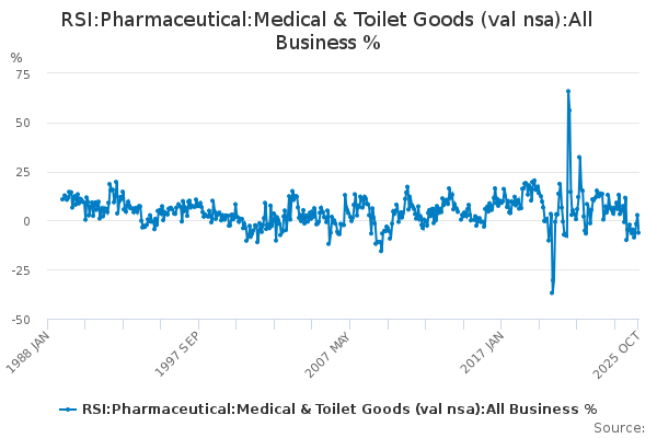 Download this time seriesRSI:Pharmaceutical:Medical & Toilet Goods (val nsa):All Business %