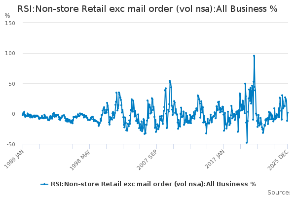 Download this time seriesRSI:Non-store Retail exc mail order (vol nsa):All Business %