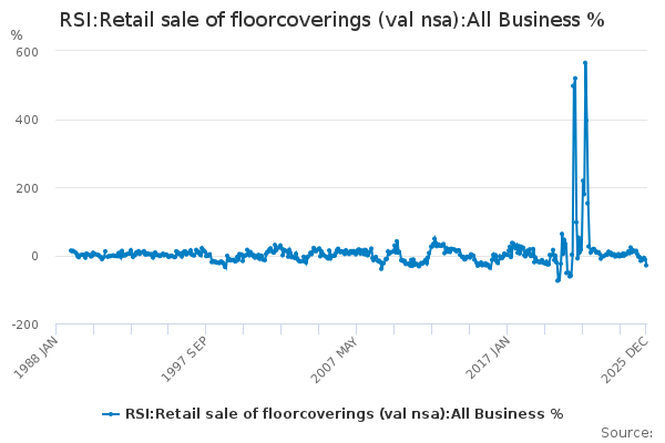 Download this time seriesRSI:Retail sale of floorcoverings (val nsa):All Business %