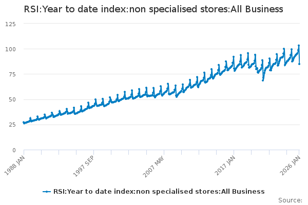 Download this time seriesRSI:Year to date index:non specialised stores:All Business