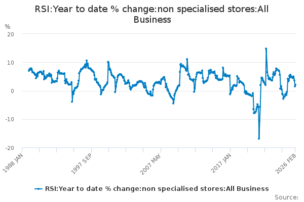 Download this time seriesRSI:Year to date % change:non specialised stores:All Business