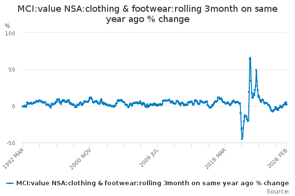 Download this time seriesMCI:value NSA:clothing & footwear:rolling 3month on same year ago % change