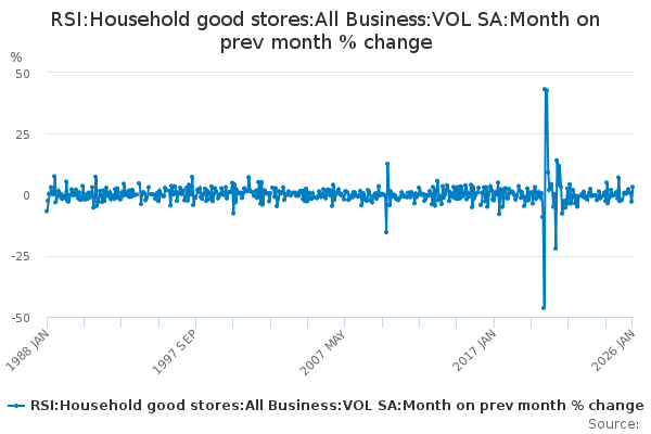 Download this time seriesRSI:Household good stores:All Business:VOL SA:Month on prev month % change