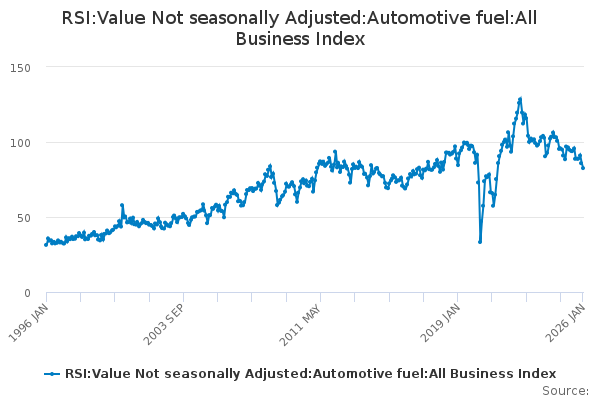 Download this time seriesRSI:Value Not seasonally Adjusted:Automotive fuel:All Business Index