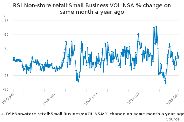 Download this time seriesRSI:Non-store retail:Small Business:VOL NSA:% change on same month a year ago