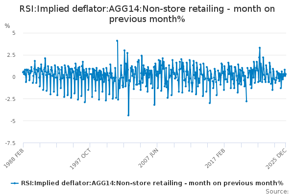 Download this time seriesRSI:Implied deflator:AGG14:Non-store retailing - month on previous month%