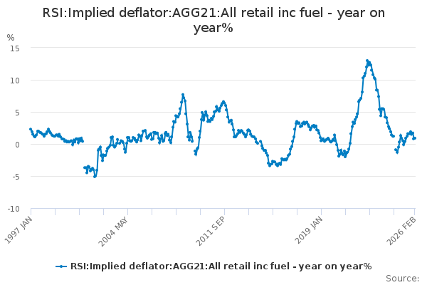 Download this time seriesRSI:Implied deflator:AGG21:All retail inc fuel - year on year%