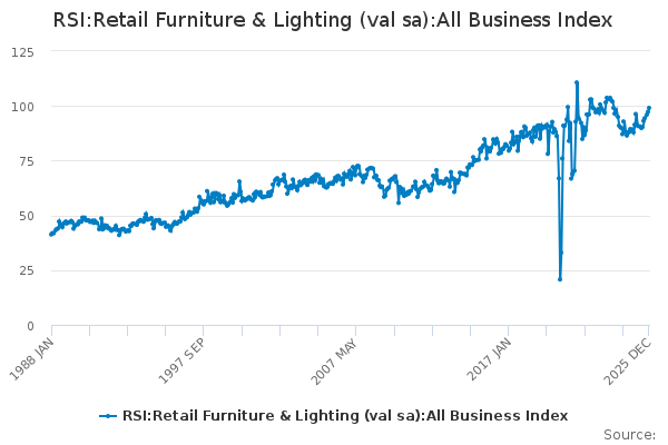 Download this time seriesRSI:Retail Furniture & Lighting (val sa):All Business Index