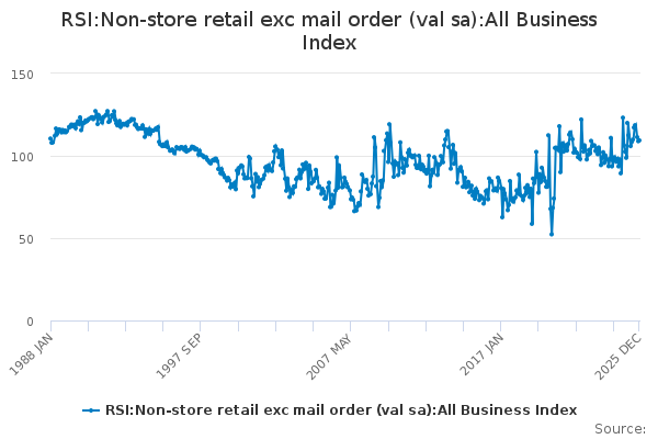 Download this time seriesRSI:Non-store retail exc mail order (val sa):All Business Index