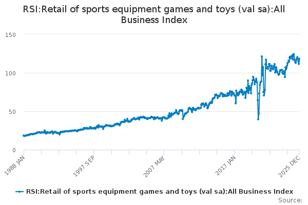 Download this time seriesRSI:Retail of sports equipment games and toys (val sa):All Business Index