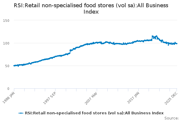 Download this time seriesRSI:Retail non-specialised food stores (vol sa):All Business Index