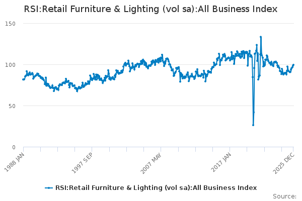 Download this time seriesRSI:Retail Furniture & Lighting (vol sa):All Business Index