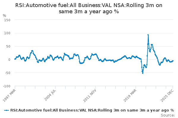 Download this time seriesRSI:Automotive fuel:All Business:VAL NSA:Rolling 3m on same 3m a year ago %
