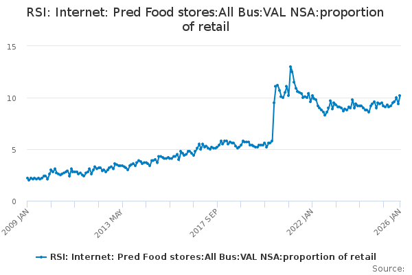 Download this time seriesRSI: Internet: Pred Food stores:All Bus:VAL NSA:proportion of retail