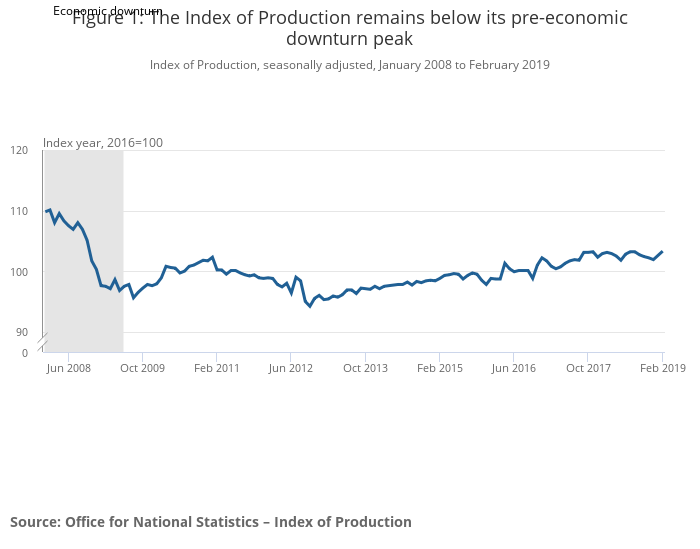 Index of Production, seasonally adjusted, January 2008 to February 2019