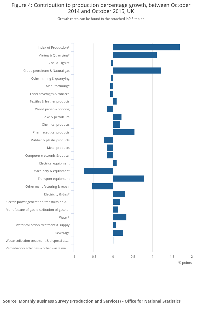 Figure 4: Contribution to production percentage growth, between October 2014 and October 2015, UK