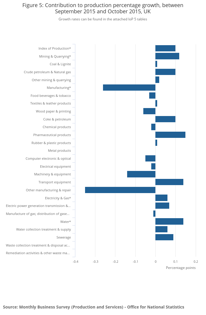Figure 5: Contribution to production percentage growth, between September 2015 and October 2015, UK