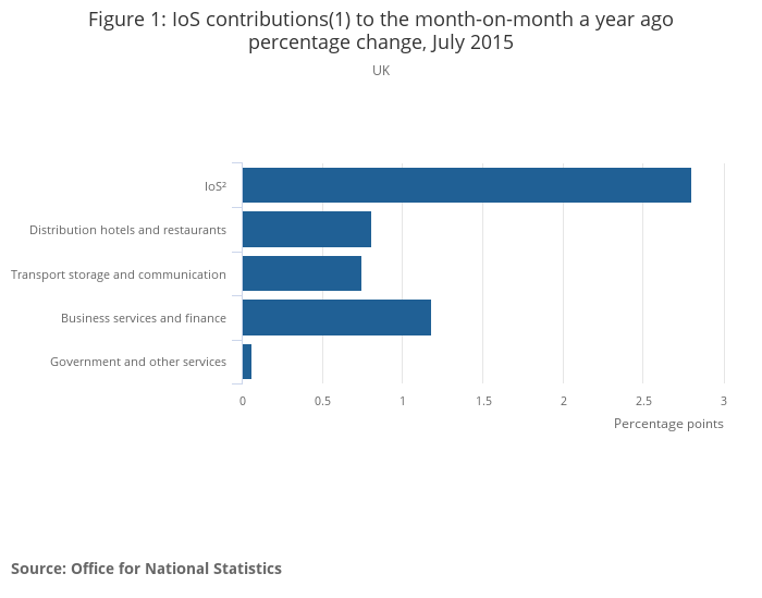 Figure 1: IoS contributions(1) to the month-on-month a year ago percentage change, July 2015