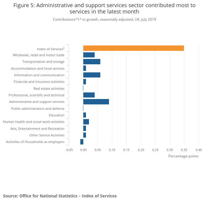 Services output increased by 0.3% in July 2019.