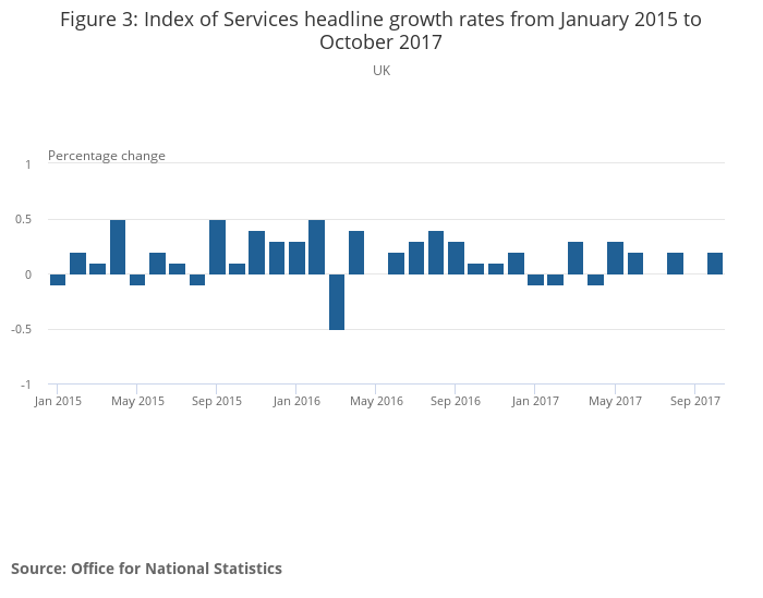 Services output increased by 0.2% in October 2017 following flat growth in September 2017.
