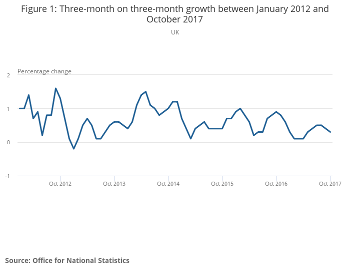 Figure 1: Three-month on three-month growth between January 2012 and October 2017