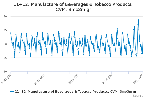 Download this time series11+12: Manufacture of Beverages & Tobacco Products: CVM: 3mo3m gr