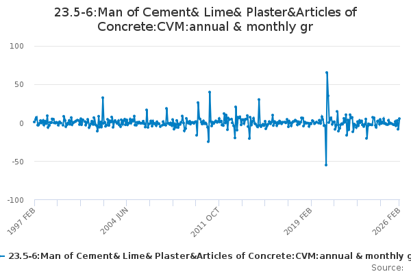 Download this time series23.5-6:Man of Cement& Lime& Plaster&Articles of Concrete:CVM:annual & monthly gr
