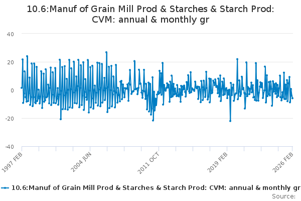 Download this time series10.6:Manuf of Grain Mill Prod & Starches & Starch Prod: CVM: annual & monthly gr