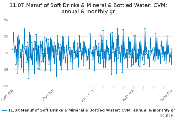 Download this time series11.07:Manuf of Soft Drinks & Mineral & Bottled Water: CVM: annual & monthly gr