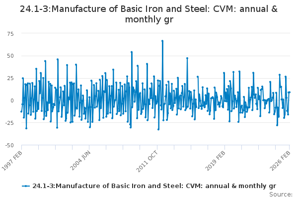 Download this time series24.1-3:Manufacture of Basic Iron and Steel: CVM: annual & monthly gr