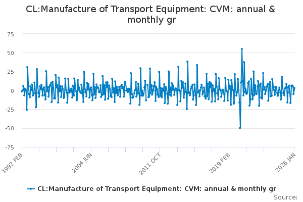 Download this time seriesCL:Manufacture of Transport Equipment: CVM: annual & monthly gr