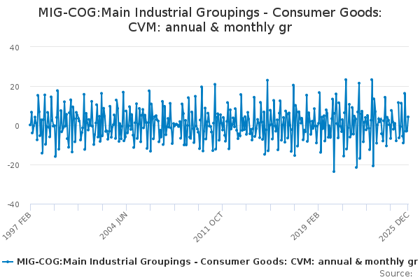 Download this time seriesMIG-COG:Main Industrial Groupings - Consumer Goods: CVM: annual & monthly gr
