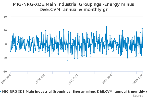 Download this time seriesMIG-NRG-XDE:Main Industrial Groupings -Energy minus D&E:CVM: annual & monthly gr