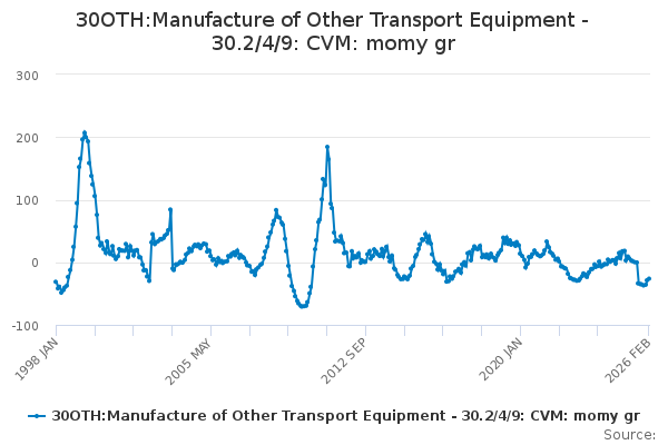 Download this time series30OTH:Manufacture of Other Transport Equipment - 30.2/4/9: CVM: momy gr