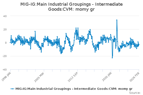 Download this time seriesMIG-IG:Main Industrial Groupings - Intermediate Goods:CVM: momy gr