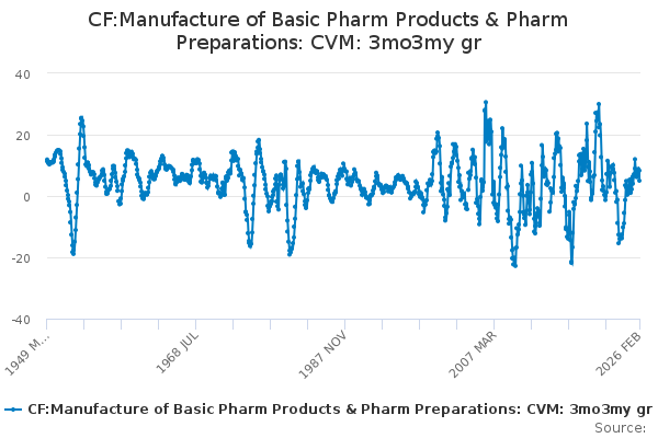 Download this time seriesCF:Manufacture of Basic Pharm Products & Pharm Preparations: CVM: 3mo3my gr