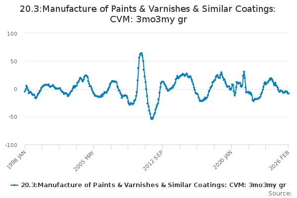 Download this time series20.3:Manufacture of Paints & Varnishes & Similar Coatings: CVM: 3mo3my gr