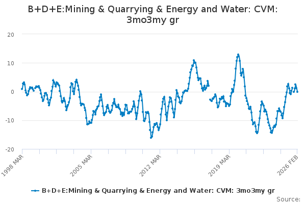 Download this time seriesB+D+E:Mining & Quarrying & Energy and Water: CVM: 3mo3my gr