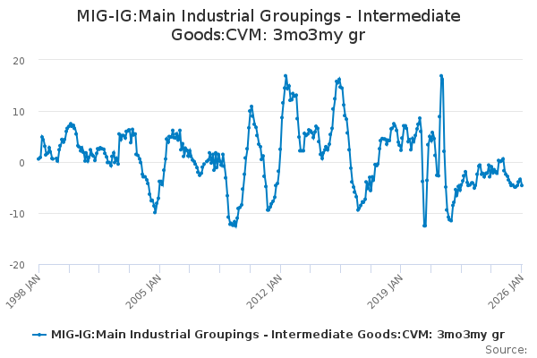 Download this time seriesMIG-IG:Main Industrial Groupings - Intermediate Goods:CVM: 3mo3my gr