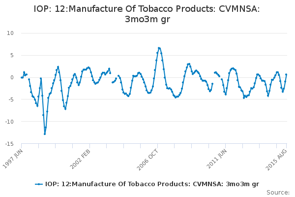 Download this time seriesIOP: 12:Manufacture Of Tobacco Products: CVMNSA: 3mo3m gr