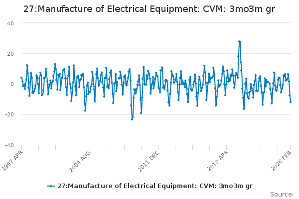 Download this time series27:Manufacture of Electrical Equipment: CVM: 3mo3m gr