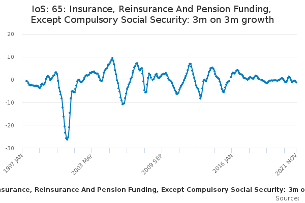 Download this time seriesIoS: 65: Insurance, Reinsurance And Pension Funding, Except Compulsory Social Security: 3m on 3m growth