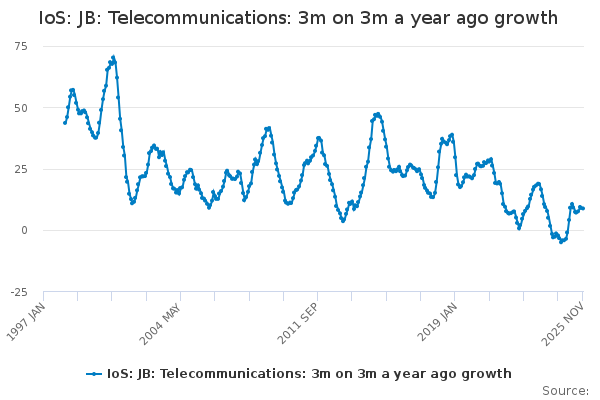 Download this time seriesIoS: JB: Telecommunications: 3m on 3m a year ago growth