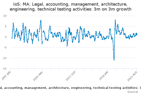 Download this time seriesIoS: MA: Legal, accounting, management, architecture, engineering, technical testing activities: 3m on 3m growth