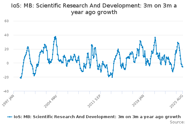 Download this time seriesIoS: MB: Scientific Research And Development: 3m on 3m a year ago growth