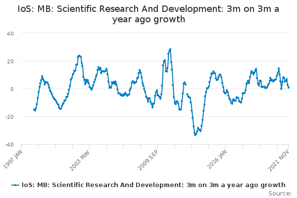 Download this time seriesIoS: MB: Scientific Research And Development: 3m on 3m a year ago growth