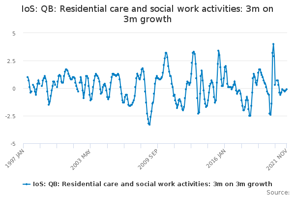 Download this time seriesIoS: QB: Residential care and social work activities: 3m on 3m growth