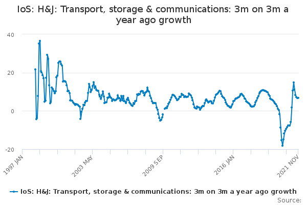 Download this time seriesIoS: H&J: Transport, storage & communications: 3m on 3m a year ago growth