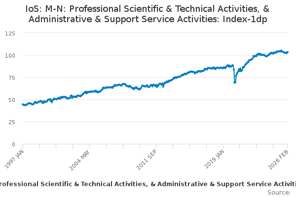 Download this time seriesIoS: M-N: Professional Scientific & Technical Activities, & Administrative & Support Service Activities: Index-1dp