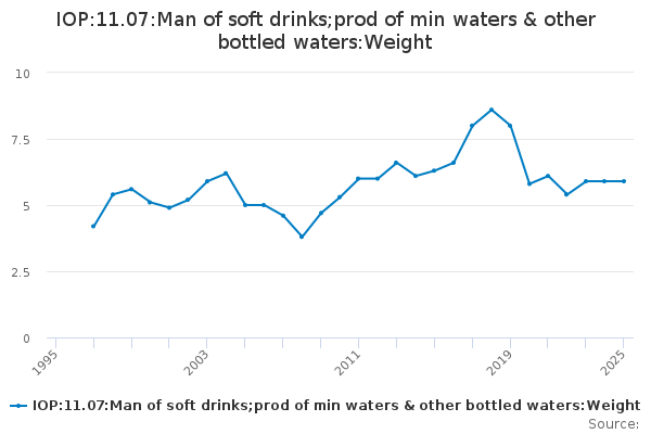 Download this time seriesIOP:11.07:Man of soft drinks;prod of min waters & other bottled waters:Weight